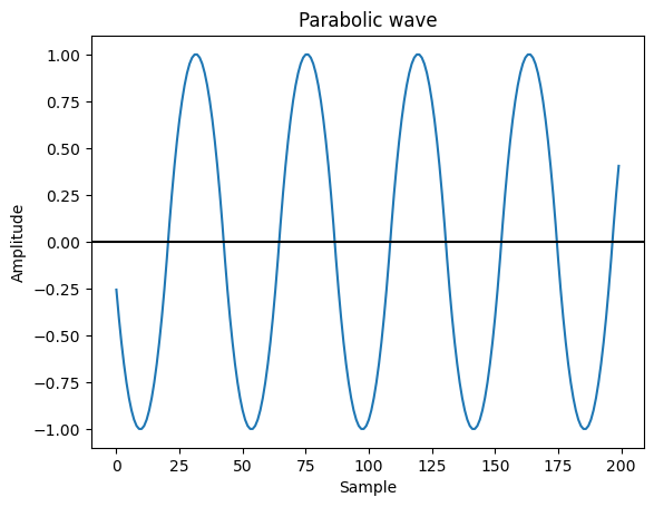 So, we integrate (or, just sum) and scale the square wave to get a triangle wave, and we integrate and scale the triangle wave to get a parabolic wave: